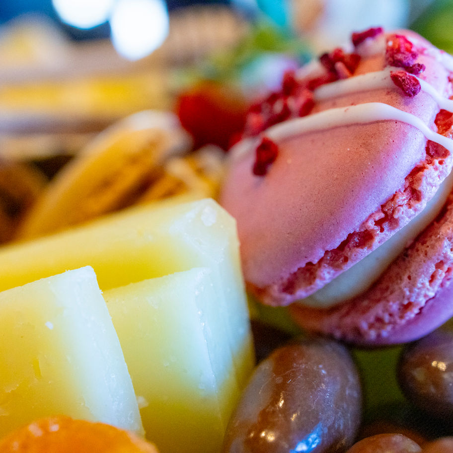 Perfect for a meal for two, this charcuterie board features a curated selection of artisan meats and cheeses, complemented by seasonal fresh fruits and a variety of crunchy nuts. To round out this experience, we’ve added rich, decadent desserts for a touch of sweetness. Enjoy an artfully arranged board that’s designed for sharing, with something to satisfy every craving from savory to sweet.